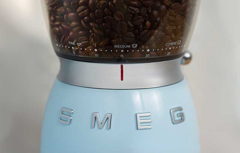 • Burr Type: Look for conical or flat burrs for consistent grinding. Smeg grinders use a conical burr for the reasons listed above.